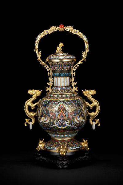 景泰蓝,又称“铜胎掐丝珐琅”,以辉煌胜金、温润胜玉、光泽胜珠、细腻胜瓷的绝妙工艺,曾独步皇宫数百年。紫禁城金銮宝殿,或者是国子监辟雍宫、颐和园排云殿,在这些帝王专属的殿堂,景泰蓝的宝石般的光芒总是令人赞叹。事实上,自从元朝忽必烈时期由西域、阿拉伯地区引进中国后,景泰蓝便迅速扎根于中国民族博大精深的艺术土壤中,发展成为独具特色的装饰艺术品,在明清时期更为皇家所垄断。